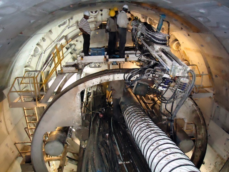 盾構機是一種使用盾構法的隧道掘進(jìn)機。盾構的施工法是掘進(jìn)機在掘進(jìn)的同時(shí)構建(鋪設)隧道之“盾”(指支撐性管片),它區別于敞開(kāi)式施工法。